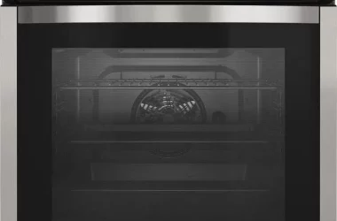 Beépíthető sütő – mérete 59,5 × 59,5 × 57,5 cm (M×Sz×Mé), űrtartalma 77 l, a felszereltség része grill, hőlégbefúvás, teleszkópos tepsi kitolás, érintéses vezérlés, 3600 W teljesítmény, időzítő, gyerekzár és kijelző, pirolitikus tisztítás, A+ energiaosztály, tápkábel csatlakozóval a csomagban