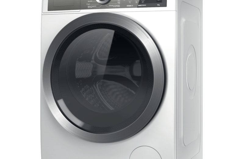 Mosógép – elöltöltős, A energetikai osztály, 9 kg töltetkapacitás, súlyozott vízfogyasztása 45 l /1 ciklus, gőzprogram, késleltetett indítás, kijelző, automatikus adagolás és gyerekzár, 6. érzék és Steam Refresh, centrifugálási fordulatszáma 1400 ford/perc, mérete 59,9 × 84,5 × 64,3 cm (Sz×Ma×Mé)