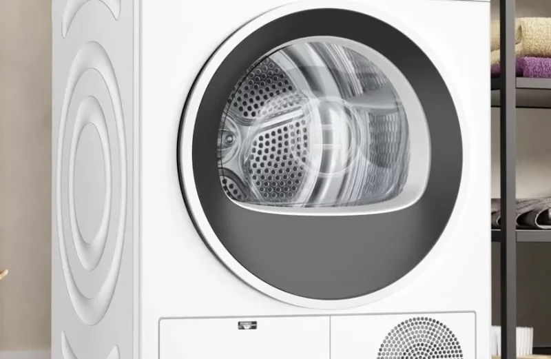 Szárítógép – kondenzációs, Hőszivattyús szabadonálló modell, A++ energiaosztályú, szárítási hatékonysága C besorolású, maximális szárítási kapacitása 8 kg, 63 dB -es zajszint, energiafogyasztása 138 kWh/100 mosási ciklus, 3DScan, SensitiveDrying technológiával, késleltetett indítás, kijelző, gyerekzár és program végét jelző hangjelzés funkcióval, mérete 84,2 × 59,8 × 61,3 cm (Ma×Sz×M), 46,7 kg tömegű, a lefolyó-csatlakozó készletet a csomag nem tartalmazza, a kondenzációs tartály a csomag részét képezi