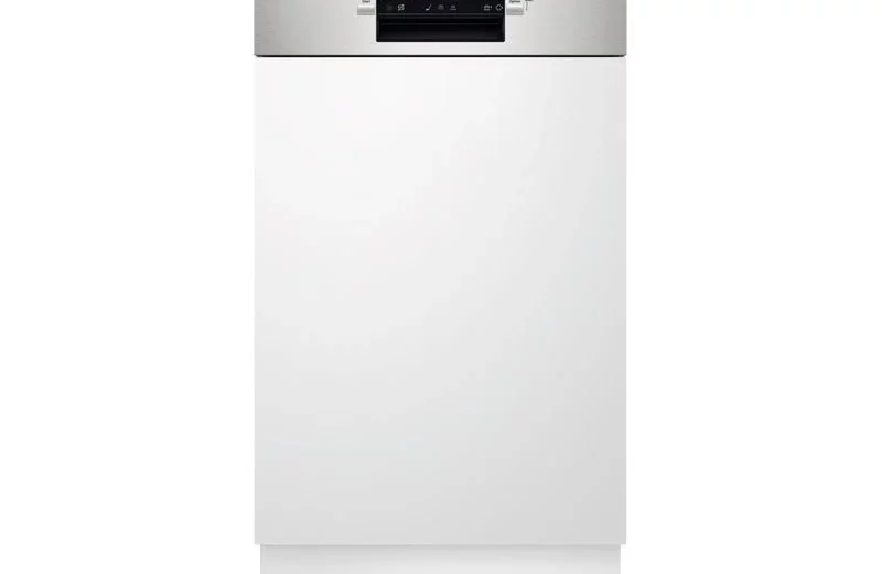Beépíthető mosogatógép – energiaosztály D, zajszint 44 dB, akár 10 étkészlet ciklusonként (ECO program), túlcsordulás elleni védelem, AutoOpen szárítás, evőeszközök elhelyezése fiókba, kijelző és állítható edénykosarak, mérete 81,8 × 44,6 × 57 cm (Ma×Sz×Mé), az első díszítőpanel az ajtón nem a kiszerelés része