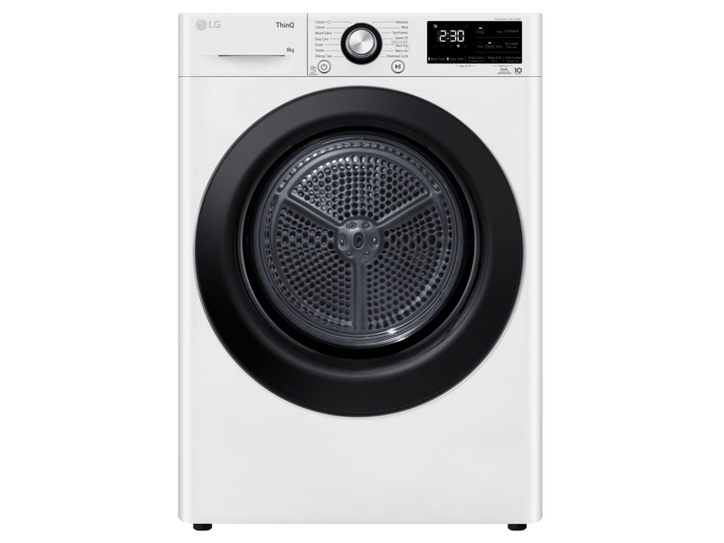 A sokoldalú LG szárítógép használatával rövid idő alatt nagy mennyiségű ruhát száríthatsz meg, amely tisztább és jobb illatú lesz, mint ha kint szárítanád. Az előlapon található beépített kijelző a beállításokkal vagy az aktuális programmal kapcsolatos információk megjelenítésére szolgál.