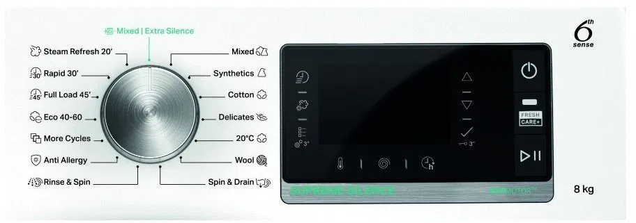 - Mindig friss – FreshCare+ funkció valóban frissebb ruhákat biztosít akár 6 órával a ciklus vége után, megelőzve a kellemetlen szagok kialakulását